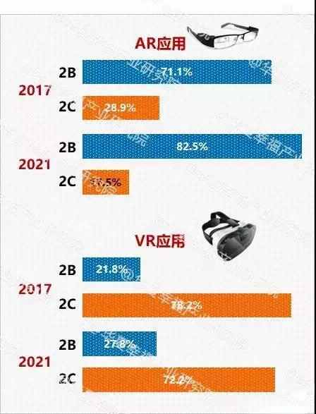 一是2B應(yīng)用明顯增多,原因其實非常簡單——AR眼鏡更輕便,且可同時觀察周邊實景與虛擬物體,2B應(yīng)用場景勢必較完全封閉獲取虛擬內(nèi)容的VR更豐富,而VR在2C端的娛樂應(yīng)用已基本成熟,VR企業(yè)必然要將觸角伸向2B端。
