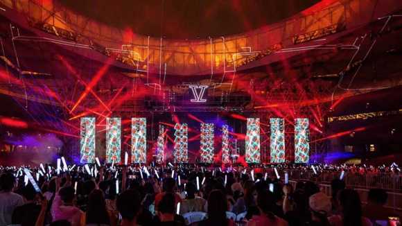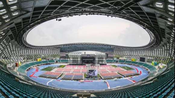 原來由于‘未·LIVE巡回演唱會’舞美設計復雜,舞臺重量超過了上海站場館地面及看臺的承重要求,存在舞臺安全隱患。為了給粉絲帶來最好的舞臺效果同時保證安全,所以改為在杭州黃龍體育場舉辦。舞臺搭建安全是底線,在此基礎上才能進行更多的舞美設計。