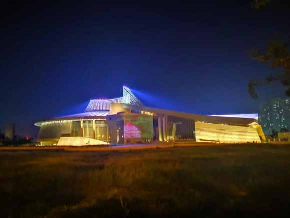 配有咖啡吧、觀景平臺等休閑區(qū)域,夜間大劇院美輪美奐