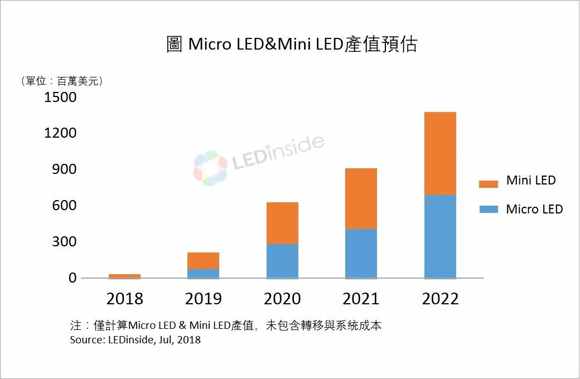 MicroLED與MiniLED產(chǎn)值預(yù)估