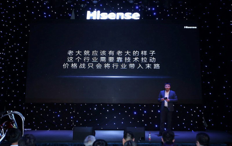 三次發(fā)布會(huì),海信接連表明態(tài)度:“推出疊屏電視只是一小步,希望我們的努力能把行業(yè)的焦點(diǎn)拉回到技術(shù)和品質(zhì),價(jià)格戰(zhàn)只會(huì)死路一條!薄半娨曅袠I(yè)應(yīng)該學(xué)會(huì)仰望星空!薄半娨曅袠I(yè)除了價(jià)格戰(zhàn)還有不斷刷新的技術(shù),還有詩和遠(yuǎn)方!
