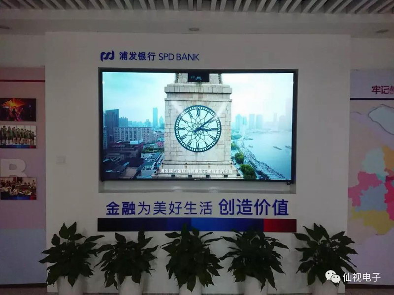 項目反饋:非常滿意,設(shè)計公司選用仙視GM86M2大屏居中布置,播放浦發(fā)宣傳視頻,以無與倫比的驚艷顯示效果,印證浦發(fā)“金融為美好生活創(chuàng)造價值”的精神,由此向兩側(cè)墻面展開多彩的浦發(fā)員工精神畫卷。