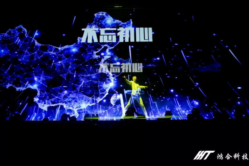 年會(huì)開場前,鴻合工程顯示團(tuán)隊(duì)精心策劃了創(chuàng)意全息投影紗幕秀,慶公司生日快樂,賀公司上市成功,為我們獻(xiàn)上了一場美輪美奐精彩絕倫的視覺饕鬄盛宴!