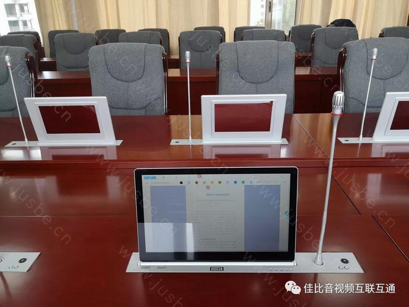 該項(xiàng)目會(huì)議桌安裝的內(nèi)嵌式桌面雙顯帶話筒升降一體終端,屏幕界面美觀、簡(jiǎn)明,操作方便,全程只需觸控屏幕即可完成會(huì)議內(nèi)容的各項(xiàng)操作,極大提高了會(huì)議效率。整套無(wú)紙化會(huì)議系統(tǒng)功能豐富,可提供會(huì)議電子簽到、會(huì)議議程、資料上傳下載、表決投票、資料共享、文檔同步閱讀、同屏投影、批注、文檔加密、電子白板交流、網(wǎng)頁(yè)瀏覽、視頻播放等多種會(huì)議服務(wù)功能。通過這種全程無(wú)紙就能貫通會(huì)議環(huán)節(jié)的會(huì)議方式,為組織會(huì)議人員和參會(huì)人員提供了一個(gè)極其實(shí)用、高效的無(wú)紙化會(huì)議平臺(tái)。