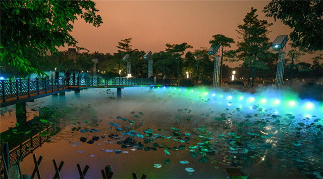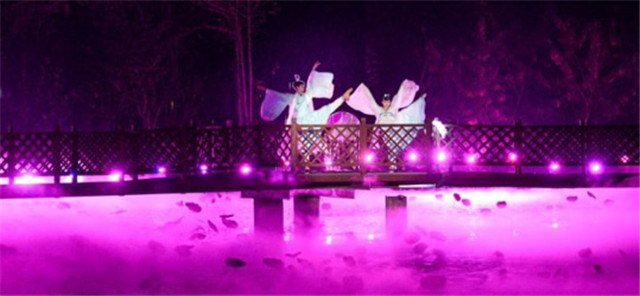 在四臺(tái)科視Christie Crimson WU30 3DLP 激光投影機(jī)的巧妙部署和投射下,荷塘籠罩在不斷變幻的斑斕色彩中,從空中到水面,光影層疊變換交相輝映帶來(lái)神奇的效果。舞蹈演員翩翩起舞,為游客獻(xiàn)上一場(chǎng)光影與文化結(jié)合的盛宴,夢(mèng)幻得如同置身仙境。