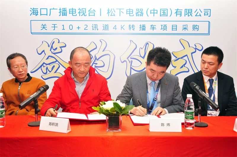 2019年3月22日,松下電器和海口廣播電視臺在CCBN2019展會上進(jìn)行了10+2訊道4K轉(zhuǎn)播車項(xiàng)目簽約儀式。出席此次活動的領(lǐng)導(dǎo)有: