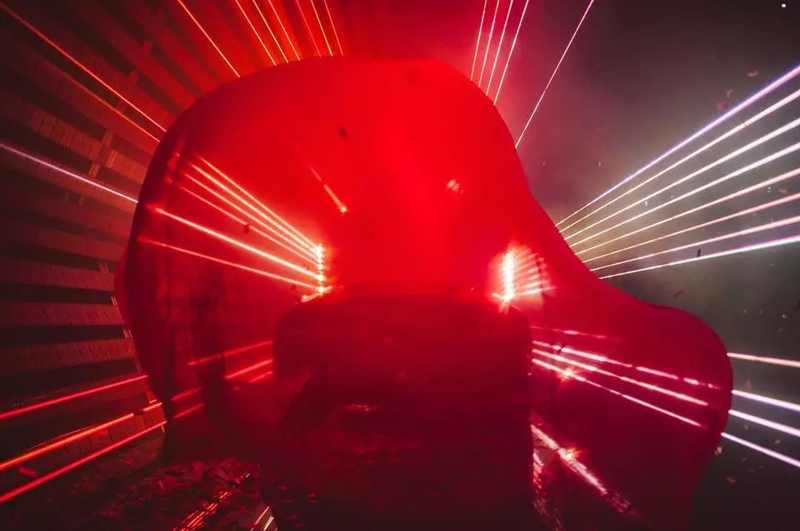 最特別的特征是紅色雪紡帶漂浮在舞臺(tái)上,與汽車一樣,它消除了真實(shí)世界和虛擬世界之間的界限。