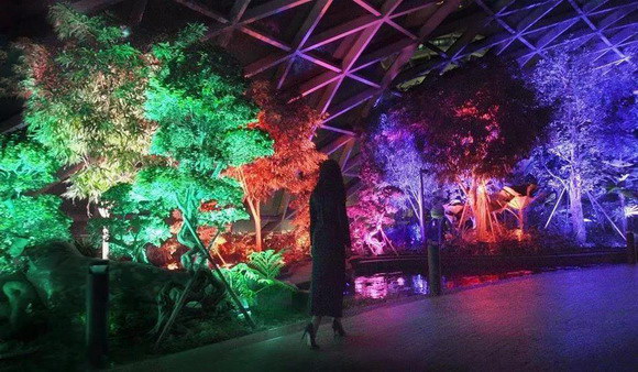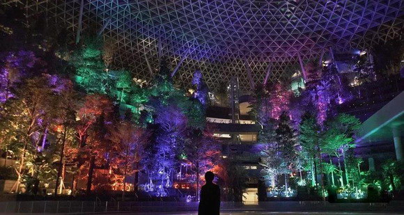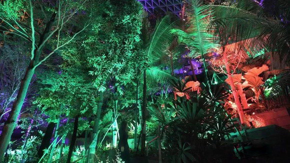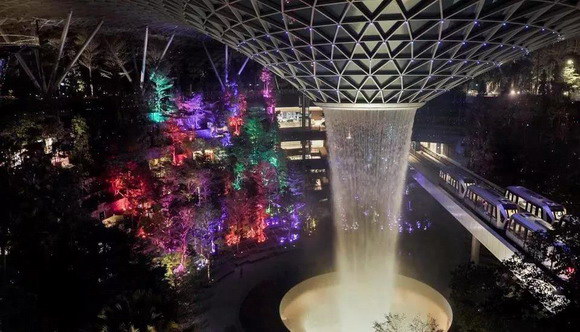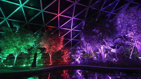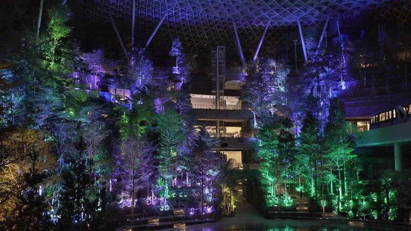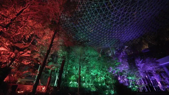 隨著傍晚的到來,白天一絲不茍接待游客的樟宜機(jī)場變得朦朧夢幻起來。像是天空中的七色彩虹落入人間,將森林溫柔的覆蓋。游客被紛紛吸引,讓人們沉浸在奇妙迷人的體驗中。