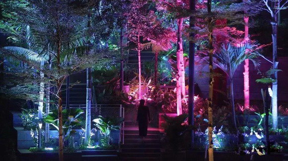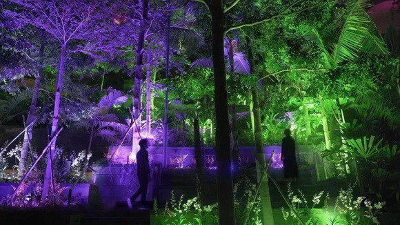 第一項作品名為“回響森林”,是teamLab與資生堂旅游零售合作打造的作品,通過S E N S E多感官藝術(shù)裝置讓夜間的熱帶雨林森林谷被光影藝術(shù)點亮,展現(xiàn)獨特的夜晚風(fēng)光供游客觀賞。