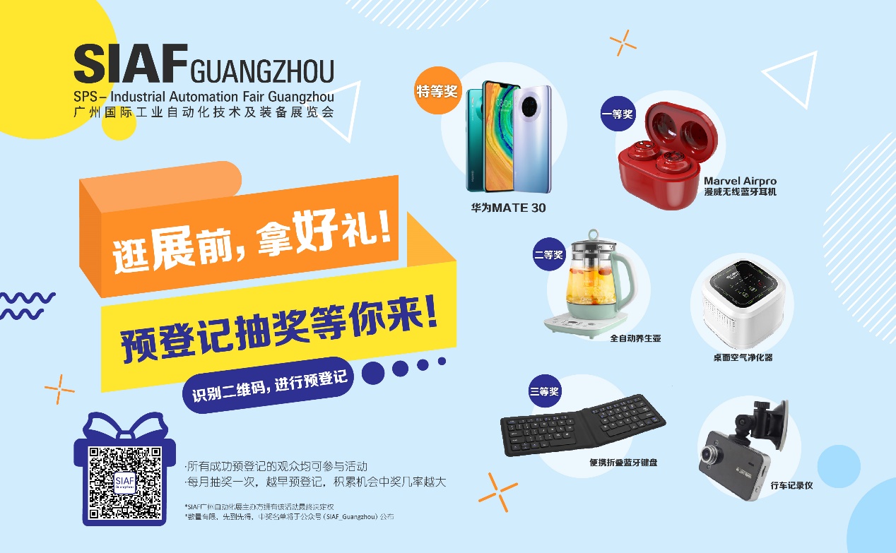 立即預(yù)登記,憑預(yù)登記號輕松換證,參與展前預(yù)登記幸運(yùn)抽獎活動,領(lǐng)取華為MATE30、漫威無線耳機(jī)、桌面空氣凈化器等豪禮!