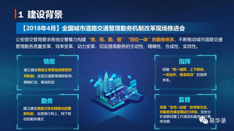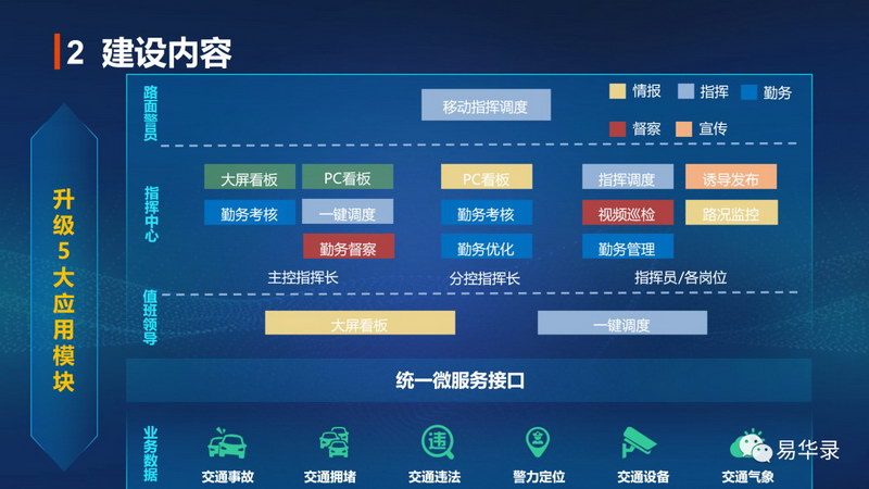 易華錄于2017年起參與到濟南支隊指揮中心升級改造中,依托市局警務(wù)云平臺及警用物聯(lián)網(wǎng)技術(shù),建設(shè)了集“預(yù)警、研判、指揮、調(diào)度、聯(lián)動、運行、考核、監(jiān)督”一體的“情指勤督”新型警務(wù)平臺,支撐濟南交通大腦服務(wù),不斷提高勤務(wù)的主動性、精確性、合成性、實效性,不斷推動城市道路交通管理工作質(zhì)量變革、效率變革、動力變革。