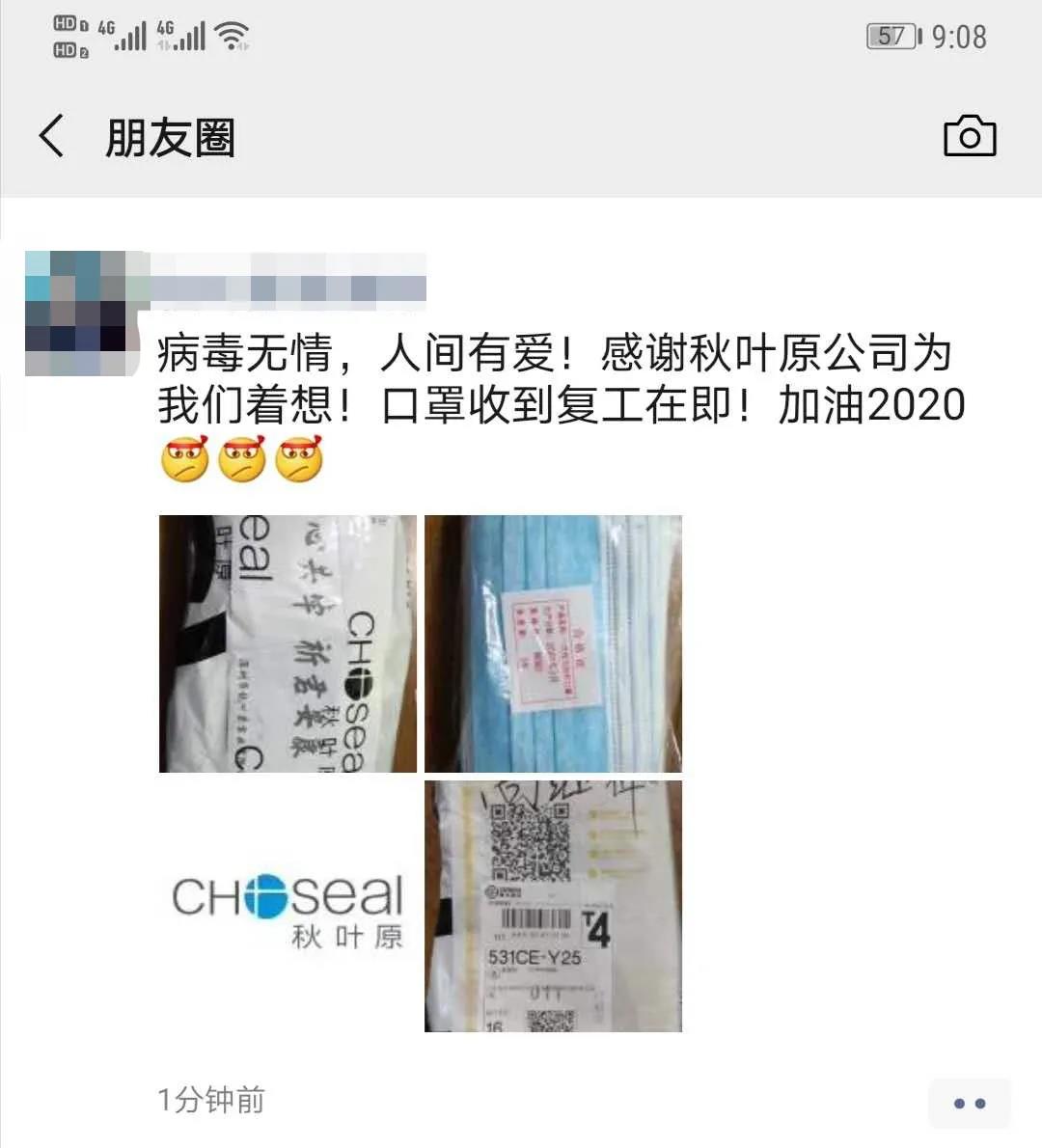 在我司戰(zhàn)略合作伙伴順豐快遞公司的火速配合支援下,應(yīng)急的防護(hù)口罩在2月20日分批次有序寄出,秋葉原全國(guó)各地合作伙伴于2月22日已陸續(xù)接收到支援貨物,可見(jiàn)秋葉原團(tuán)隊(duì)在關(guān)鍵時(shí)刻完成應(yīng)急任務(wù)的出色能力,也是秋葉原強(qiáng)大團(tuán)隊(duì)力量最生動(dòng)的體現(xiàn)!