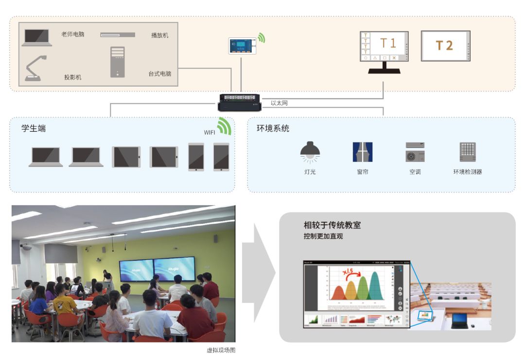 老師可以輕松地在課堂上調用多種資源,使用智能手機或平板電腦界面直觀地切換內容。放映資源可以是任何內容,從傳統(tǒng)標準音視頻設備到每一位學生攜帶的個人設備的畫面。