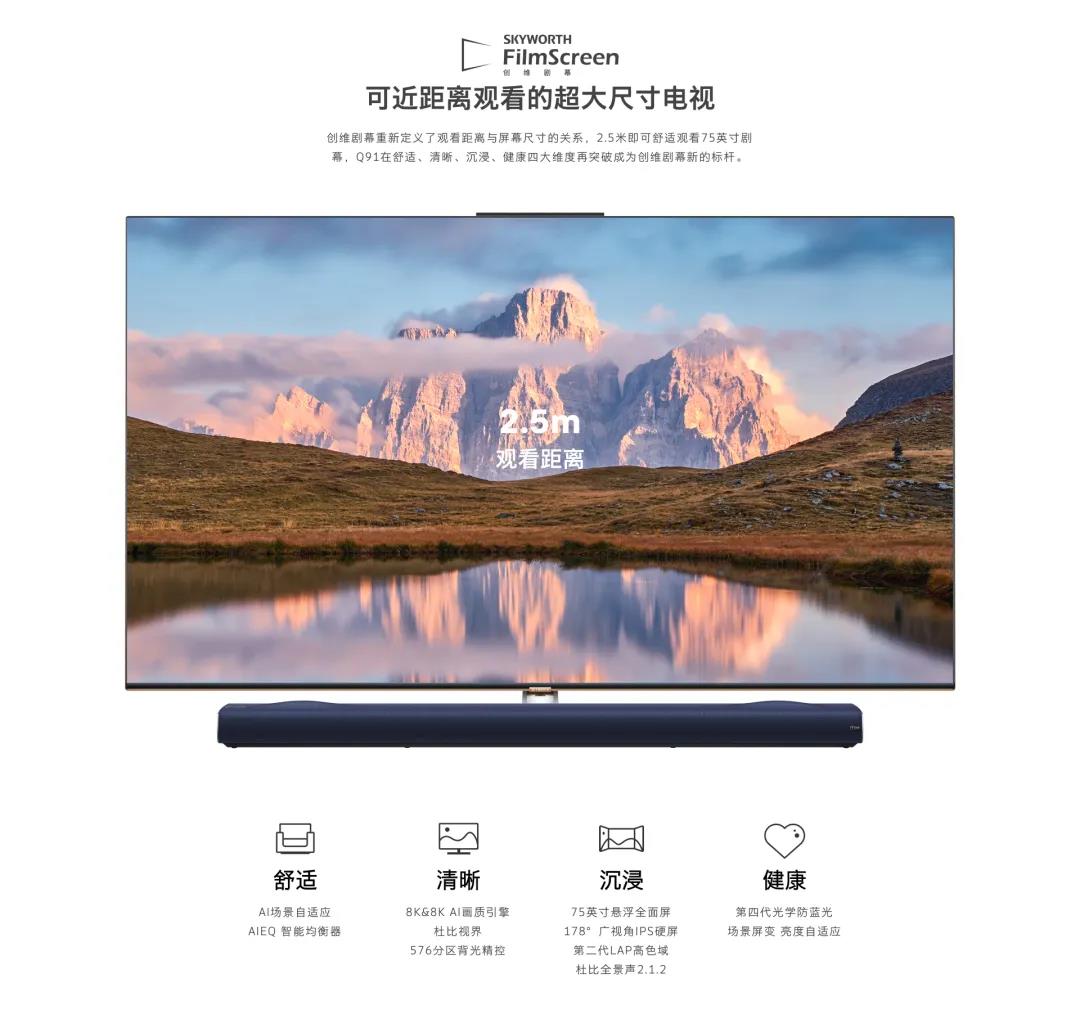 從近期市面上發(fā)布的新品趨勢來看,今年重點(diǎn)無疑會(huì)落在在8K、OLED、AIoT等新興技術(shù)上。從480P CRT電視、720P背光彩電、1080P平板電視,到如今已經(jīng)深度普及的4K和即將到來的8K電視,每一次分辨率的提升都是一次技術(shù)革命。為滿足人們對于高品質(zhì)高科技機(jī)型的向往,也為了進(jìn)一步推動(dòng)8K產(chǎn)業(yè)發(fā)展,創(chuàng)維搶先布局8K大屏生態(tài),推出了Q91系列電視作為創(chuàng)維首款量產(chǎn)8K電視。