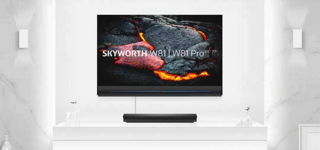 創(chuàng)維首款自制OLED模組電視產(chǎn)品——W81系列電視,采用超薄無縫貼墻的Wallpaper OLED壁紙?jiān)O(shè)計(jì)及分體式結(jié)構(gòu),并利用OLED屏幕自發(fā)光、柔性的特點(diǎn),將屏幕的厚度再次壓縮,以4.6mm超薄機(jī)身突破傳統(tǒng)形態(tài)限制,打造出具有壁紙形態(tài)的新型電視科技產(chǎn)品,可以毫無違和感地“貼”在客廳的墻壁上,宛如壁畫。