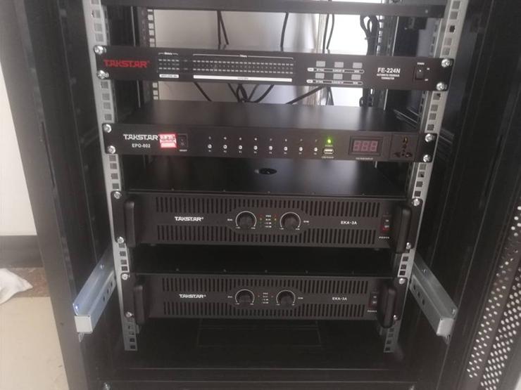 為滿足徐州觀音國(guó)際機(jī)場(chǎng)對(duì)會(huì)議室的要求,得勝(江蘇)工程團(tuán)隊(duì)選用MS200-4 會(huì)議麥克風(fēng)作為會(huì)議室拾音設(shè)備,該麥克風(fēng)采用背極式駐極體音頭,具有靈敏度高、頻率響應(yīng)寬、失真小、噪音低等特點(diǎn),超心型指向拾音方式,可有效降低聲反饋,實(shí)現(xiàn)拾音清晰、自然的需求,搭載H類電路設(shè)計(jì)的EKA-3A功放,可有效確保高效、清晰的會(huì)議效果。周邊設(shè)備選用的XR-1016FX 十六路調(diào)音臺(tái)和TS-108 十路集線器,可將多路輸入信號(hào)進(jìn)行分配、混合、音質(zhì)修飾等加工,F(xiàn)E-224N 自動(dòng)反饋抑制處理器可自動(dòng)處理聲場(chǎng)中的聲反饋,EPO-802 電源時(shí)序器可有效避免人為操作帶來(lái)音響設(shè)備的損傷,使會(huì)議環(huán)境更輕松,確保會(huì)議能穩(wěn)定召開。