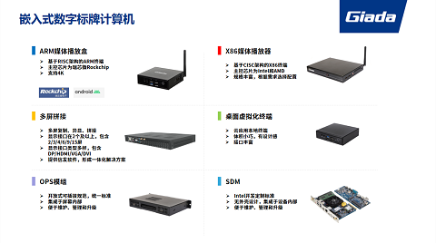 杰和科技專(zhuān)注數(shù)字標(biāo)牌媒體播放器研發(fā)生產(chǎn)20余年,目前已擁有品類(lèi)齊全、性能豐富的系列媒體播放器整機(jī)及主板產(chǎn)品,其中包括ARM媒體播放盒、X86媒體播放器、多屏拼接控制電腦、客戶機(jī)、OPS模組和SDM系列等。