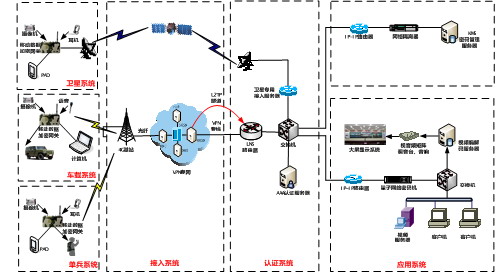 入網(wǎng)認證管理系統(tǒng)主要包括LNS網(wǎng)關路由器、AAA認證服務器和IP-IP路由器等。LNS網(wǎng)關路由器主要用于實現(xiàn)與4G VPN專網(wǎng)中的GGSN連接并建立L2TP隧道,是L2TP隧道的邏輯終點。AAA服務器是驗證、授權和記費的簡稱,主要進行身份認證、授權以及用戶信息的存儲、策略管理等。L2TP隧道將用戶封裝的原始PPP數(shù)據(jù)包傳送到隧道終點后,LNS網(wǎng)關路由器解包還原為用戶發(fā)起的原始數(shù)據(jù)包,AAA認證服務器根據(jù)數(shù)據(jù)包中的用戶ID、密碼和設備識別碼及串號等對用戶進行認證,并設定用戶權限,通知LNS網(wǎng)關路由器為用戶分配固定軍網(wǎng)IP地址。 IP-IP路由器是實現(xiàn)IP-IP隧道協(xié)議的網(wǎng)絡設備,具有根據(jù)發(fā)送和接收IP數(shù)據(jù)包報頭自動添加IP-IP隧道功能,是專為移動網(wǎng)關設計的專用路由器。不同網(wǎng)段的車載或單兵終端發(fā)送的數(shù)據(jù)包經(jīng)過移動網(wǎng)關的路由模塊,按照預先設定的規(guī)則自動轉(zhuǎn)化為同一網(wǎng)段的IP地址,實現(xiàn)點對點跨網(wǎng)段互通。與固定側(cè)網(wǎng)絡互通時,經(jīng)IP-IP路由器按相反規(guī)則還原為原地址進行通信,實現(xiàn)系統(tǒng)路由免配置。 (四)視音頻應用系統(tǒng)