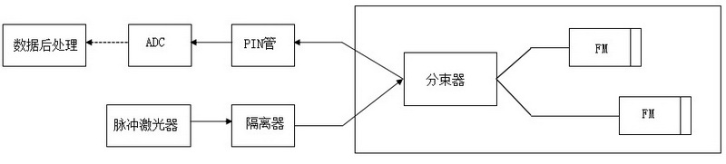 量子真隨機數(shù)發(fā)生器采用高速脈沖激光器作為光源,最大可以提供1000MHz的光脈沖頻率,采用Faraday-Michelson延時環(huán)結(jié)構,該結(jié)構通過BS將入射光分成兩路,兩路光的光程不同,一路走長臂,一路走短臂,通過長臂和短臂末端的法拉第鏡將兩路光分別反射回去,并在出口處形成相位干涉,經(jīng)PIN管進行采樣后形成隨機脈沖信號,最后通過ADC器件對隨機脈沖信號的幅度進行AD轉(zhuǎn)換,最后再經(jīng)過數(shù)據(jù)后處理操作得到真隨機數(shù)的0、1序列。