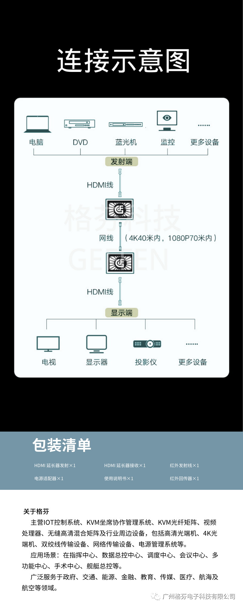 格芬電子科技有限公司始終站在數(shù)字視頻和HDTV發(fā)展的最前沿,最直接地面對(duì)市場(chǎng),為HDTV分配、延長(zhǎng)和轉(zhuǎn)換提供解決方案,最大地優(yōu)化數(shù)字視頻資源。