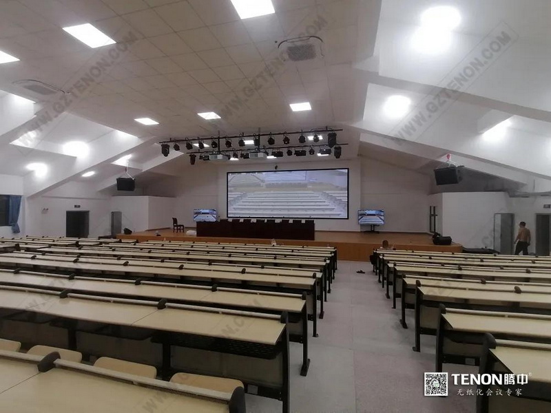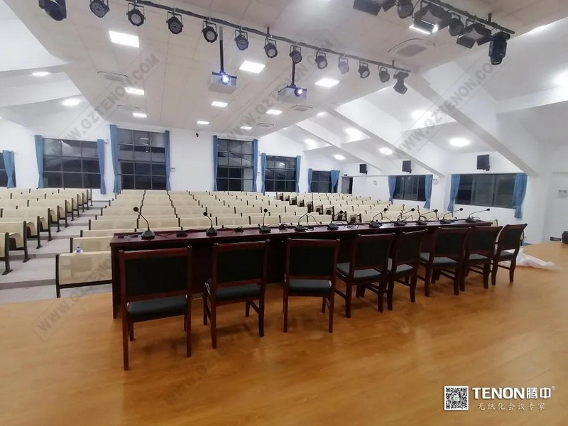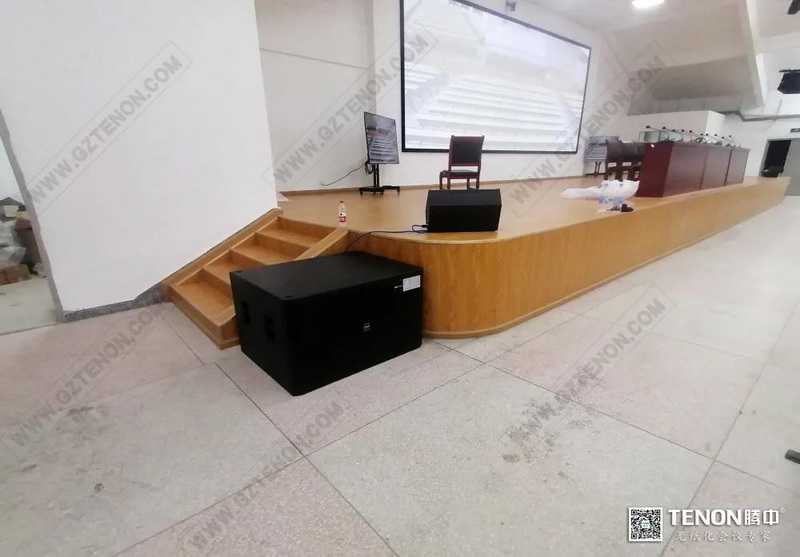 因為要兼顧舞臺表演方式,因此,在采用傳統(tǒng)手拉手會議系統(tǒng)的方式下,還搭配了無線會議系統(tǒng),方便各種用途的需要。