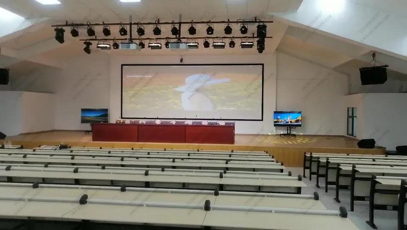 采用電視機(jī)和投影機(jī)投影兩種方式相結(jié)合,完全滿足同步顯示與會議相關(guān)的圖像、圖形、圖片、文字及語音信息資料,舞臺表演實時播放回放。在作為常規(guī)的多功能會議室使用時,投影機(jī)加LED電視機(jī)顯示系統(tǒng)可以完全滿足文件瀏覽、播放、閱讀。在舞臺表演時,投影大幕布可以作為播放或者是影像背景墻,增加可視效果。這樣的設(shè)計思路,完全同時可以支持視頻信號、各種制式的AV信號、TV射頻信號、各種分辨率的圖像信號,同時也支持電影的播放形式,滿足各種功能的需要。