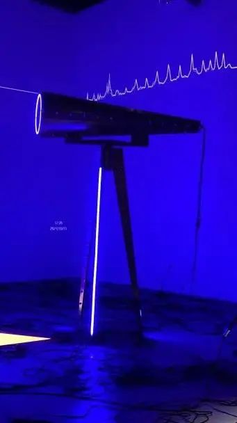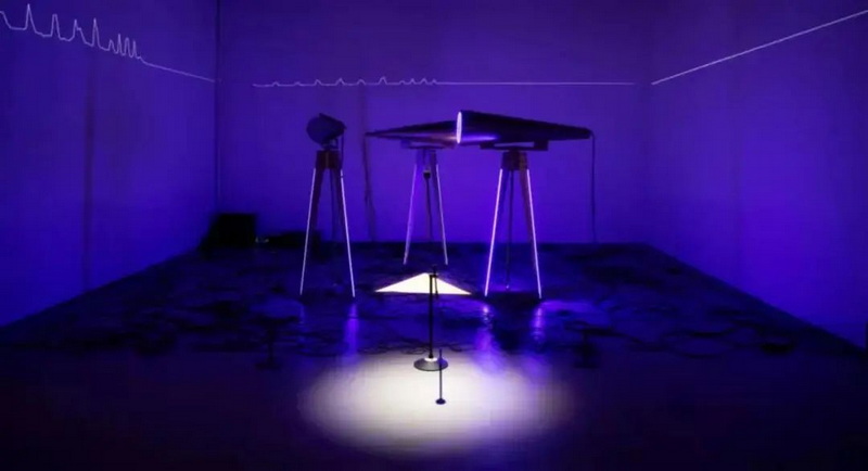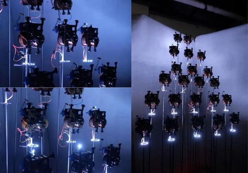 利用光去反應(yīng)不同的時(shí)間的,既是對(duì)時(shí)間不同方式的呈現(xiàn),也是對(duì)于時(shí)間的一種記錄,一種度量。收集的每一個(gè)老舊表芯時(shí)間不一樣,運(yùn)動(dòng)速度不一樣,小燈閃爍也就不一樣。每個(gè)時(shí)間不同的機(jī)械表芯旋轉(zhuǎn)著打擊頭上的燈,創(chuàng)造一個(gè)無(wú)思考無(wú)意義的陣型,只是經(jīng)歷計(jì)算著無(wú)思考的時(shí)間。