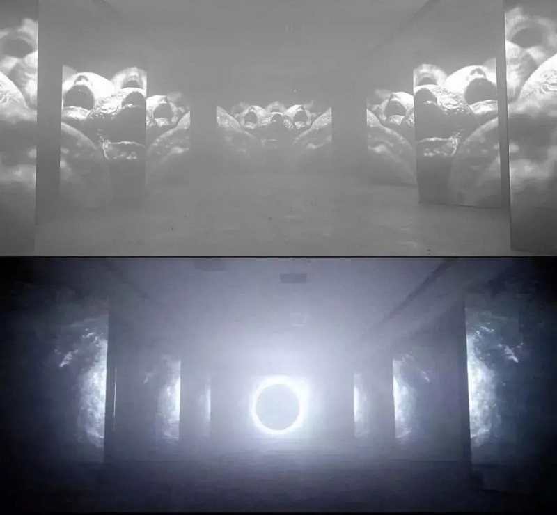 在對(duì)空間的探究中,圍繞“弦理論”對(duì)空間維度的預(yù)言,將我們引入高維的“超空間”遐想。升維的思考或許是反觀的最佳視角,所以我們選擇直面未知的維度。作品《未知·維度》是由20屆畢業(yè)生圍繞未知維度的探討所引發(fā)的十二個(gè)話題,從而生成十二件獨(dú)立綜合媒介空間藝術(shù)作品,并聯(lián)合浙江音樂(lè)學(xué)院畢業(yè)生協(xié)同創(chuàng)作完成。通過(guò)數(shù)字系統(tǒng)控制各部分作品在空間中交替隱現(xiàn),呈現(xiàn)不同話題間整體連貫的詩(shī)性敘事。作品嘗試突破劇場(chǎng)的三維視覺(jué)空間,以沉浸式通感體驗(yàn)呈現(xiàn)超空間的跨維度猜想。