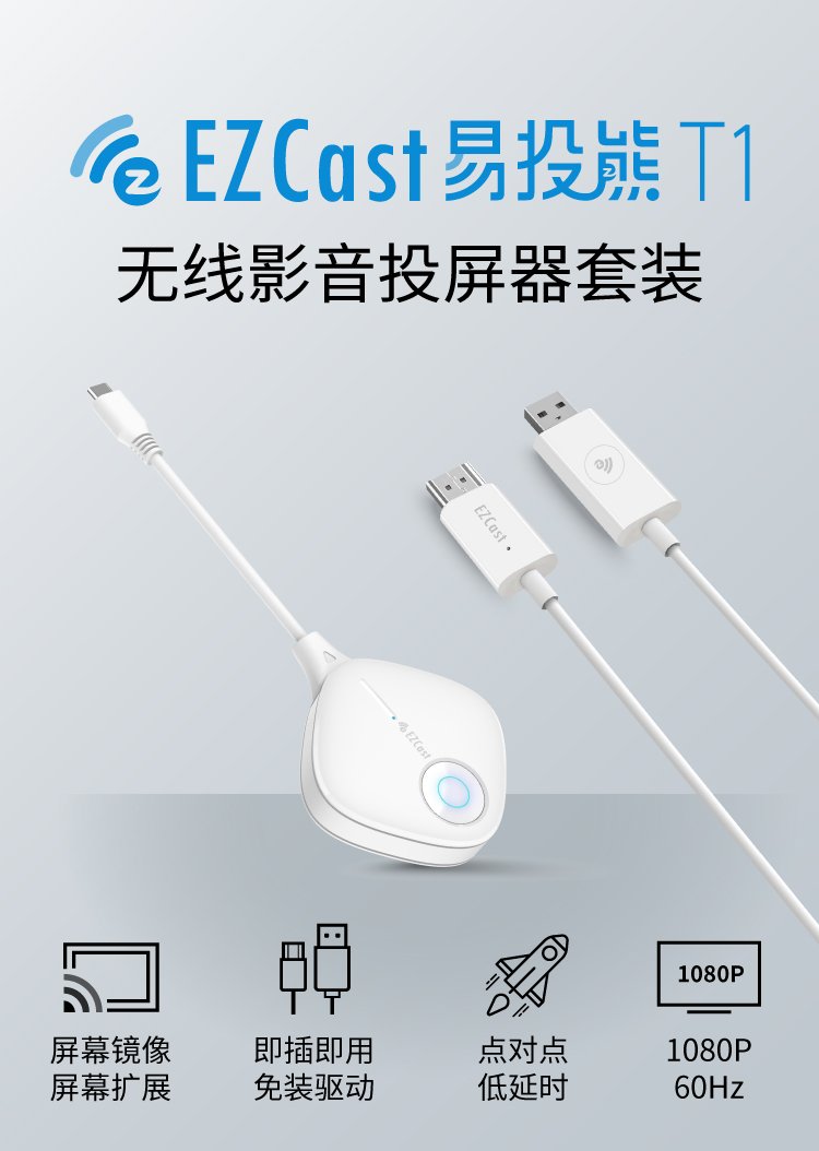 EZCast易投熊T1無(wú)線影音投屏器套裝就是新階段的產(chǎn)物!