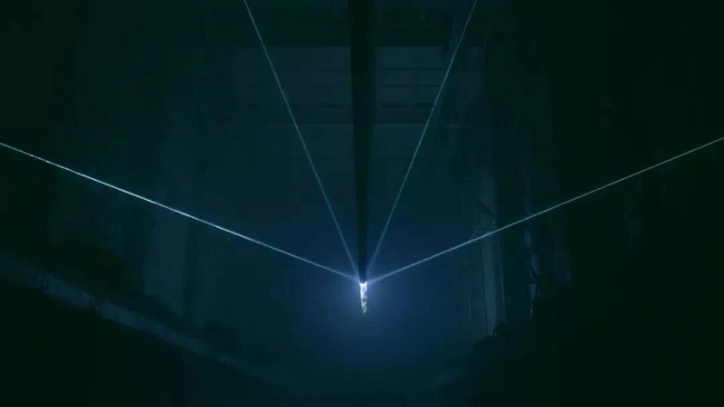 這是俄羅斯創(chuàng)作團(tuán)隊(duì)SETUP在一個(gè)充滿工業(yè)風(fēng)的廠房內(nèi)做的燈光裝置測(cè)試,將激光與影像裝置巧妙結(jié)合,激光劃過裝置時(shí)會(huì)點(diǎn)亮對(duì)應(yīng)的影像,仿佛一道天外之光劃過長空。