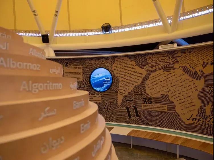 在圓錐體下方的廣場(chǎng)上, “閃光”(Destellos)展區(qū)由一系列的壁畫(huà)、裝置組成,展現(xiàn)了西班牙文化對(duì)世界的影響。