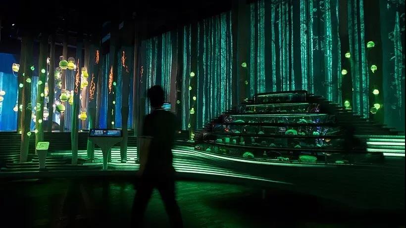 在西班牙館的底層,是一個(gè)3D沉浸式人造森林,稱為"智能森林 "。這個(gè)展區(qū)向我們展示了一個(gè)充滿希望的可持續(xù)發(fā)展未來(lái)。