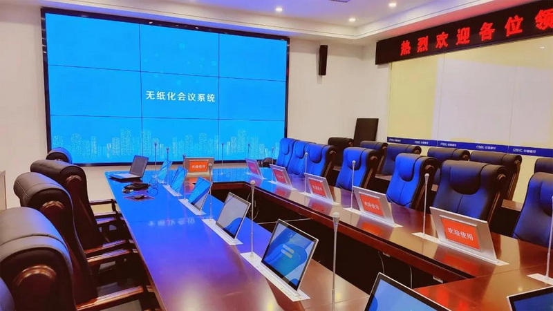 無(wú)紙化會(huì)議系統(tǒng):為實(shí)現(xiàn)會(huì)議的全程無(wú)紙化,本次項(xiàng)目采用15.6寸雙屏帶話筒無(wú)紙化會(huì)議終端,該系統(tǒng)除了集成了全數(shù)字會(huì)議系統(tǒng)軟件,還能達(dá)到對(duì)會(huì)議議程全數(shù)字化管理。