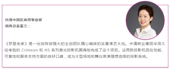 《夢里老家》前兩季演出采用 1 臺 Christie Roadster S+22K-J 及 1 臺 Roadie HD+35K 投影機來進行背景投影。
