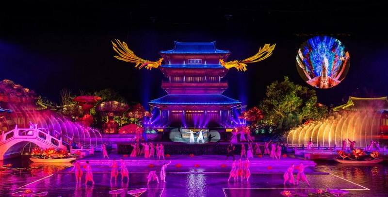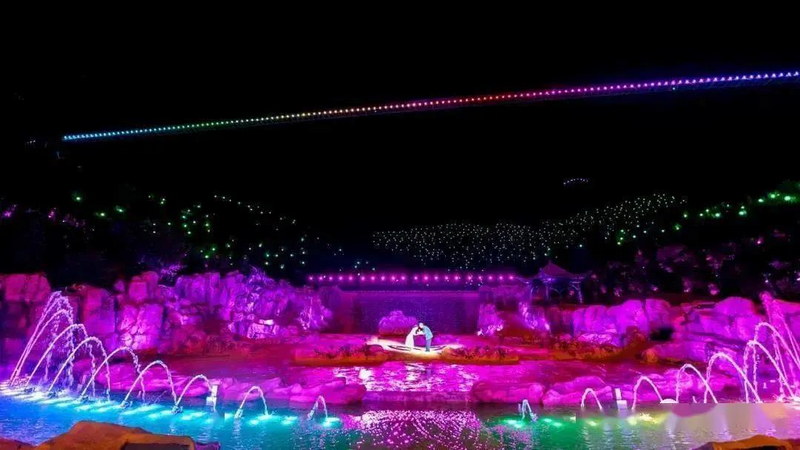 以文化為魂、以山水為骨,充分汲取龍?zhí)兜は肌す彭嵦⿲幍臍v史文化精髓。以夢為線索,全程音樂分段控制,引領(lǐng)游客進入一個神奇的夢中仙境,打造獨一無二的視聽體驗。。