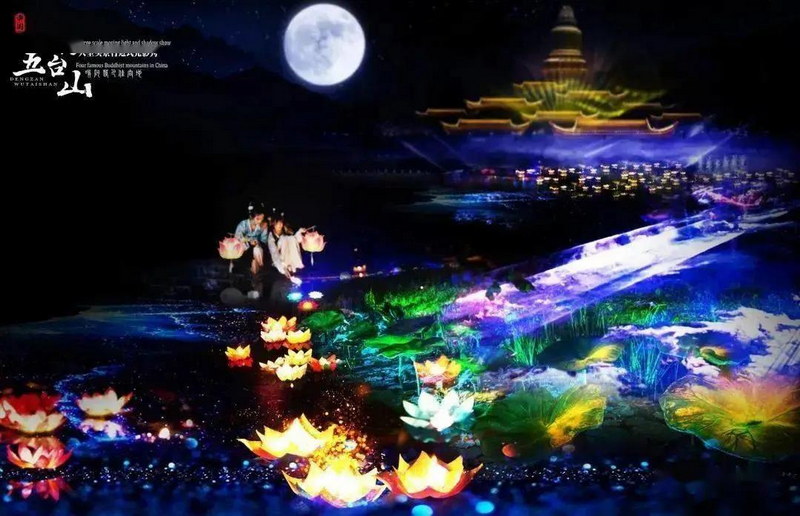 五臺山“空間光影秀”旖旎炫彩的燈光點亮了五臺山景區(qū)中心的夜空輪廓線,彌補了五臺山?jīng)]有大型空間實景光影秀的空白,同時讓世界上唯一一座世界文化遺產(chǎn)佛教圣山五臺山成為了中國佛教實景文化藝術(shù)光影演出新地標(biāo)。
