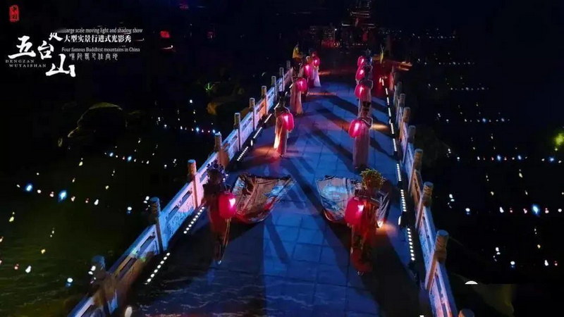 《燈贊五臺山》實景光影秀將五臺山傳世名篇以3Dmapping投影秀、燈光秀、多媒體動畫等先進的光影技術(shù)與舞蹈劇目、戲曲演藝結(jié)合。運用極致的視覺表達、高標(biāo)準(zhǔn)的美學(xué)追求打造全方位4D沉浸行進觀演實景空間,讓塵封千年的五臺山故事于舞臺之上破維重現(xiàn)!