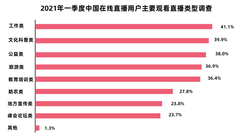 2021年上半年,除金融、教育、培訓、醫(yī)療等傳統(tǒng)較早開啟直播的行業(yè),企業(yè)+直播的行業(yè)和場景不斷豐富,像企業(yè)直播+旅游,企業(yè)直播+文化,企業(yè)直播+助農等場景不斷涌現(xiàn),預計下半年將有更多企業(yè)直播+行業(yè)和場景將陸續(xù)“驚喜上架”。