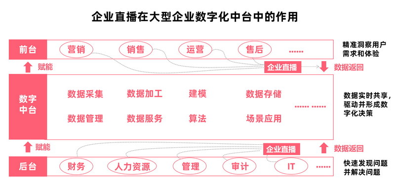 對于組織架構龐大、員工數(shù)量多的大型企業(yè),企業(yè)更青睞搭建品牌自有直播平臺,因此較靈活,可按需開發(fā)功能(支持與企業(yè)數(shù)據(jù)中臺或業(yè)務系統(tǒng)打通)的PaaS服務更符合企業(yè)數(shù)字化戰(zhàn)略需求。