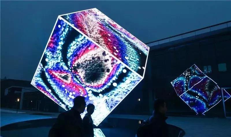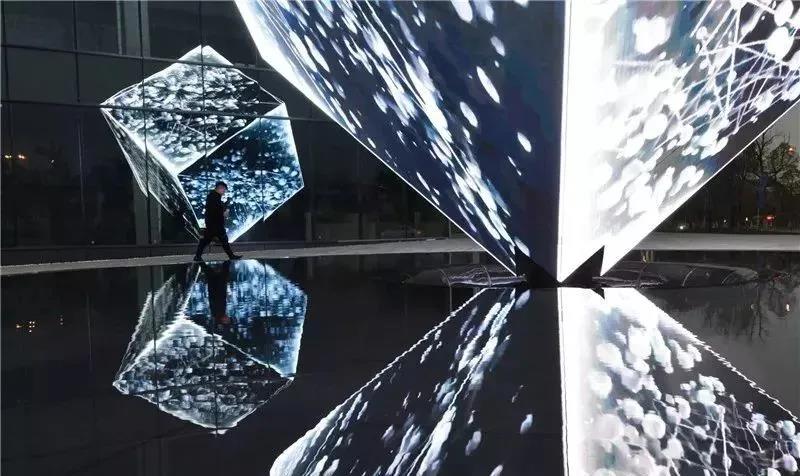 藝術(shù)家們對新媒體藝術(shù)的創(chuàng)新就像人類對宇宙的探索從沒停止過。裝置將天文與雕塑、建筑等藝術(shù)形式相結(jié)合,營造出一種變幻莫測的美妙畫面,給人強烈的視覺沖擊力,立方體的造型更可以360度無死角的圍觀欣賞拍照。