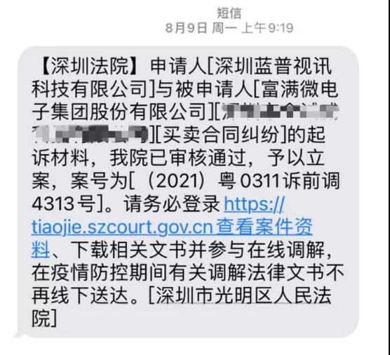 藍(lán)普視訊訴富滿電子買賣合同糾紛案已由人民法院受理,藍(lán)普視訊2021年8月9日收到正式立案通知,兩案索賠合計(jì)5278.26萬(wàn)元。