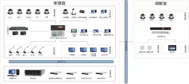 本項(xiàng)目共建設(shè)1個審理庭,1個調(diào)解室,其中包含庭審資源管理系統(tǒng),庭審軟件應(yīng)用系統(tǒng),庭審實(shí)時控制系統(tǒng),庭審語音實(shí)時轉(zhuǎn)寫系統(tǒng)等,可以實(shí)現(xiàn):