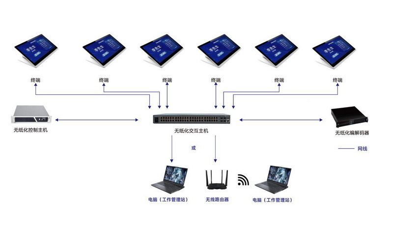 無紙化桌面終端內(nèi)置電腦主板,內(nèi)嵌無紙化會議軟件,一體成型。搭配無紙化控制主機(jī)、無紙化編解碼器、無紙化交互主機(jī),即可組成整套無紙化會議系統(tǒng)。