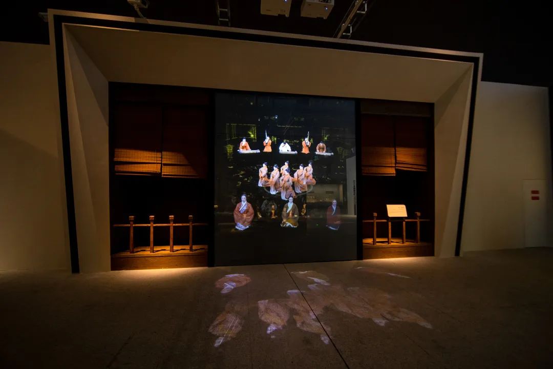 展項(xiàng)借助全息虛擬技術(shù),結(jié)合真人演繹表演實(shí)拍聯(lián)動(dòng),營(yíng)造出若虛若實(shí)的環(huán)境氛圍。音樂聲扣人心弦,舞姿婀娜曼妙,裊裊歌聲回味無窮,一場(chǎng)西漢歌舞盛景引人遐想。曲罷,徒留一眾陶俑佇立展柜中,人們這才驚覺原來是陶俑而非真人。