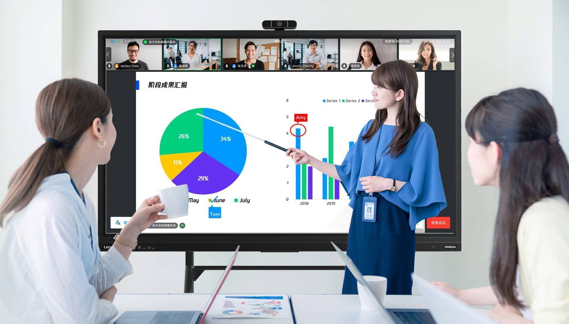 在會前準(zhǔn)備階段,用戶可通過聯(lián)想thinkplus會議平板Tpro系列內(nèi)置預(yù)裝的騰訊會議Rooms快速加入會議或發(fā)起會議,大大縮短會議準(zhǔn)備階段的時間。在會中階段,通過騰訊會議Rooms,用戶可以暢享1080P的高清視頻會議,并通過智能音頻降噪,讓會議更加清晰流暢。騰訊會議Rooms還支持多人多端遠程協(xié)作與共同協(xié)作批注的功能,可以將PC、手機等智能設(shè)備畫面快速共享到會議平板上,不僅支持共同批注,還能最多同時打開12個智慧白板,記錄共享會議靈感。騰訊會議Rooms的雙屏同顯、雙屏異顯等功能,則讓使用者多元化內(nèi)容展示和書寫一目了然。在會后階段,用戶可以一鍵生成并保存會議記錄,快速分享給參會者;并可以通過集中式后臺管理,對所有騰訊會議Rooms設(shè)備進行遠程的集中化管理,做到設(shè)備狀態(tài)可視化,節(jié)省管控成本,省時省力。