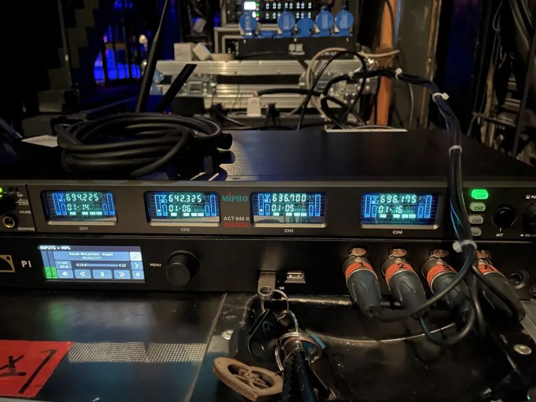 調(diào)音臺使用一張Quantum 338,這款調(diào)音臺有著更耐看的視覺設(shè)計,科技感爆棚。并配套各種人性化的應(yīng)用特性,帶有38個物理推子和3個17英寸LCD高分辨率觸摸屏,可處理128個輸入通道。不僅如此,這款調(diào)音臺更是集齊了SD系列調(diào)音臺所有優(yōu)勢,并在此基礎(chǔ)上進一步增加了Quantum引擎特有的Spice Rack(調(diào)料機架)和Nodal Processing(節(jié)點處理),全新的處理器也讓調(diào)音臺系統(tǒng)反應(yīng)速度更快,操作起來更得心應(yīng)手。接口箱使用的是D2-Rack。