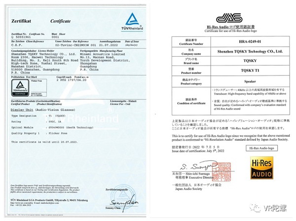 戴上TQSKY T1視聽眼鏡,眼前是一塊5米等效視距、150英寸、雙目4k分辨率的大屏,畫質(zhì)自然細(xì)膩流暢。值得一提的是,TQSKY T1獲得了德國TUV萊茵低藍(lán)光認(rèn)證,可以看出天趣星空對(duì)用眼健康的注重。耳邊是臨場(chǎng)感十足的飽滿聲音。據(jù)悉,T1視聽眼鏡獲得了日本Hi-Res高解析音頻認(rèn)證,這也是行業(yè)中首款獲得該認(rèn)證的智能眼鏡產(chǎn)品。在現(xiàn)場(chǎng)人流如織的環(huán)境下,定向的聲音傳導(dǎo)依然清晰,聲音開到最大,旁邊的人也不會(huì)聽到眼鏡中播放的聲音,這些都得益于鏡腿處內(nèi)置的回旋式音倉,搭載聲音定向傳導(dǎo)技術(shù),聲音更靠近耳朵,不會(huì)對(duì)外擴(kuò)散,能夠很好地保護(hù)使用時(shí)的隱私性。