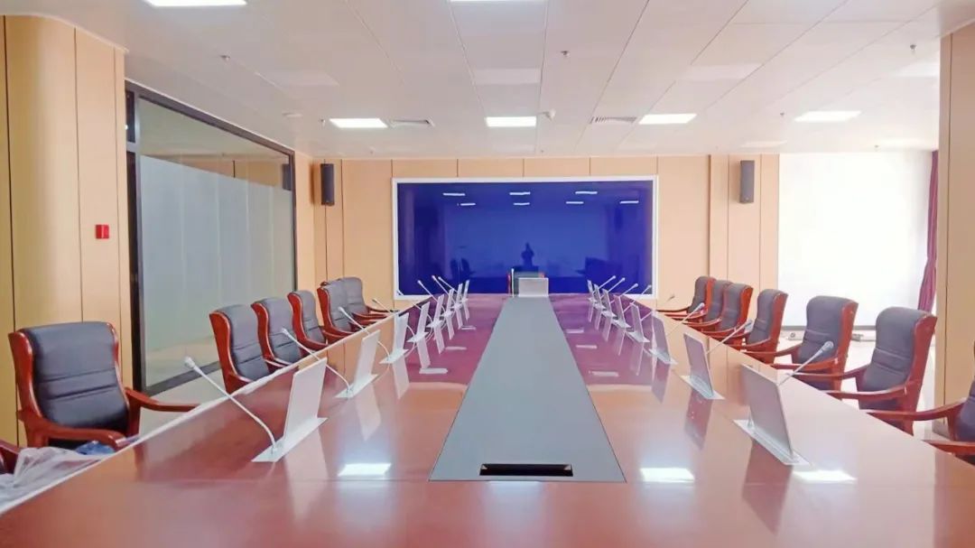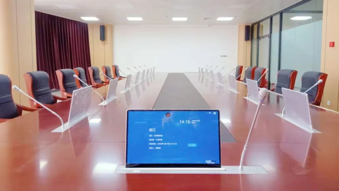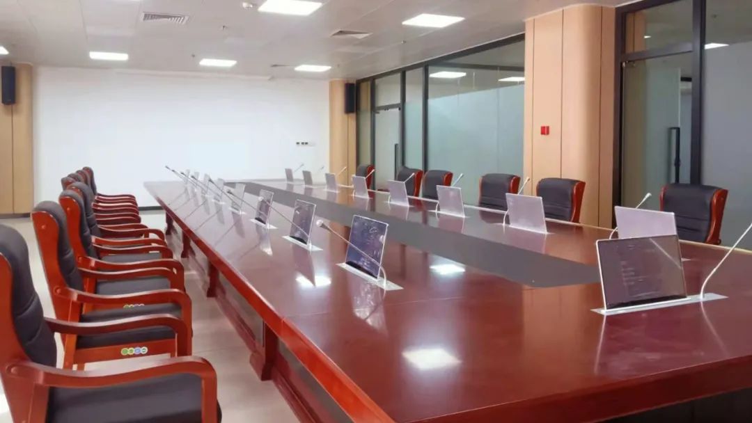 無紙化會議系統(tǒng):本次項目采用15.6寸單屏帶話筒無紙化會議系統(tǒng),該系統(tǒng)支持會議發(fā)言管理、會議議程、讀取U盤內(nèi)容、臨時文件、電子白板、會議服務等;智能推送會議文件,后臺文件按會議進程自動按權(quán)限推送到前端會議終端;可設定文件推送權(quán)限,無權(quán)顯示的會議終端會自動屏蔽該文件顯示;發(fā)言音質(zhì)清晰、無雜音,讓會議實現(xiàn)多媒體、多功能化,實時交互更加多元化,提高會議效率及質(zhì)量。