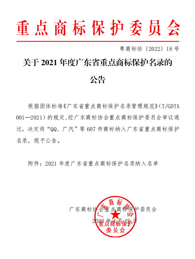 2021年度廣東省重點(diǎn)商標(biāo)保護(hù)名錄