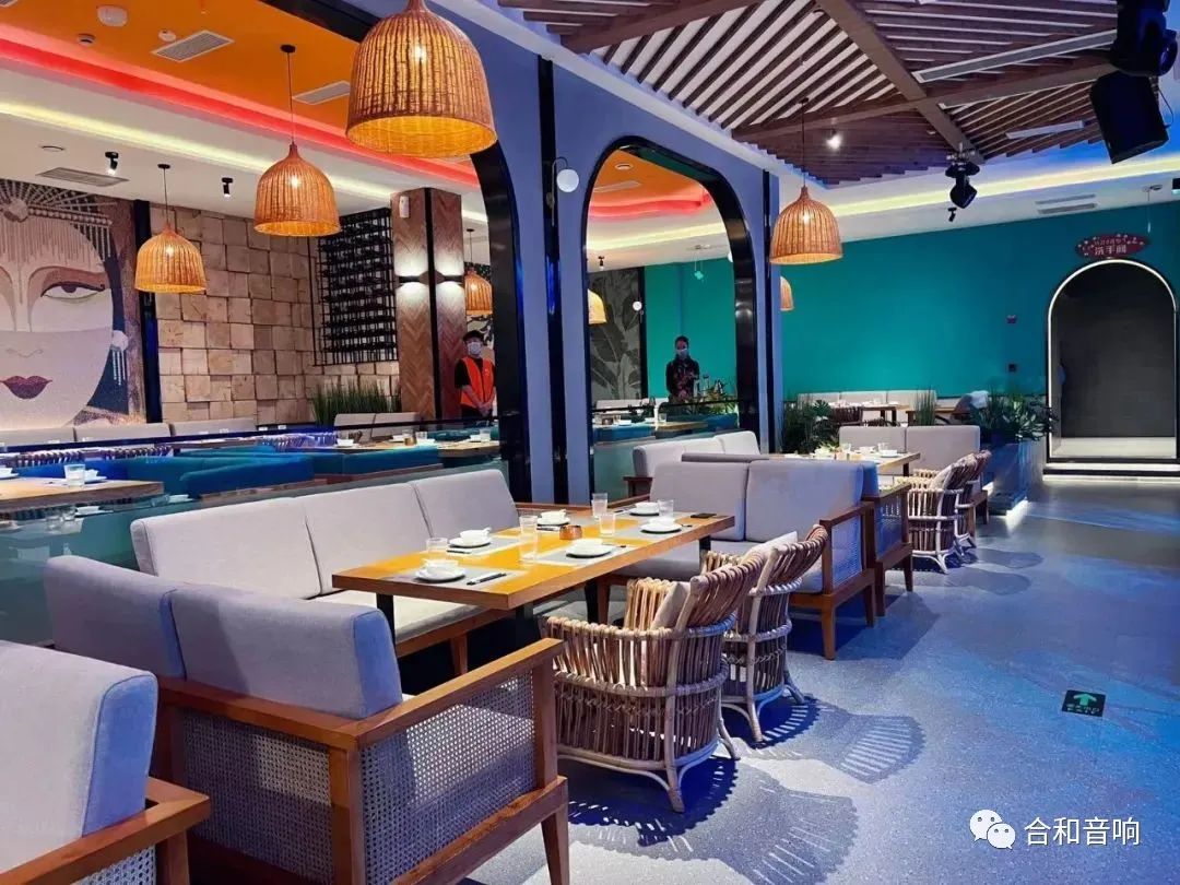 餐吧空間設計色彩豐富,音響設計因地制宜,合理布局,既達到聲壓覆蓋均勻,同時也不影響空間設計美感。